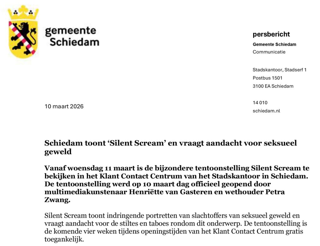 Schiedam toont ‘Silent Scream’ en vraagt aandacht voor seksueel geweld